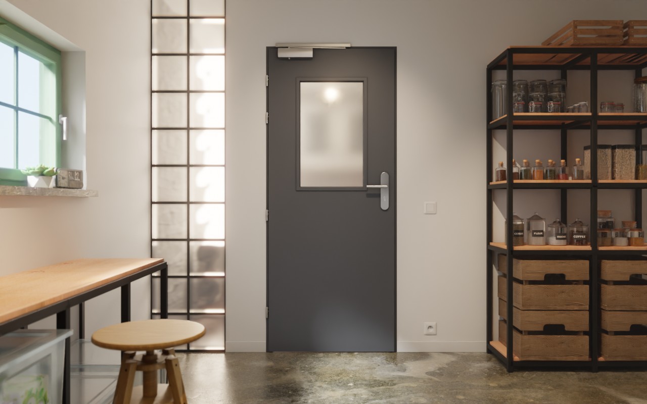 • Zakres dostawy: Skrzydło drzwiowe, zawiasy, zamek, szkło przeciwpożarowe