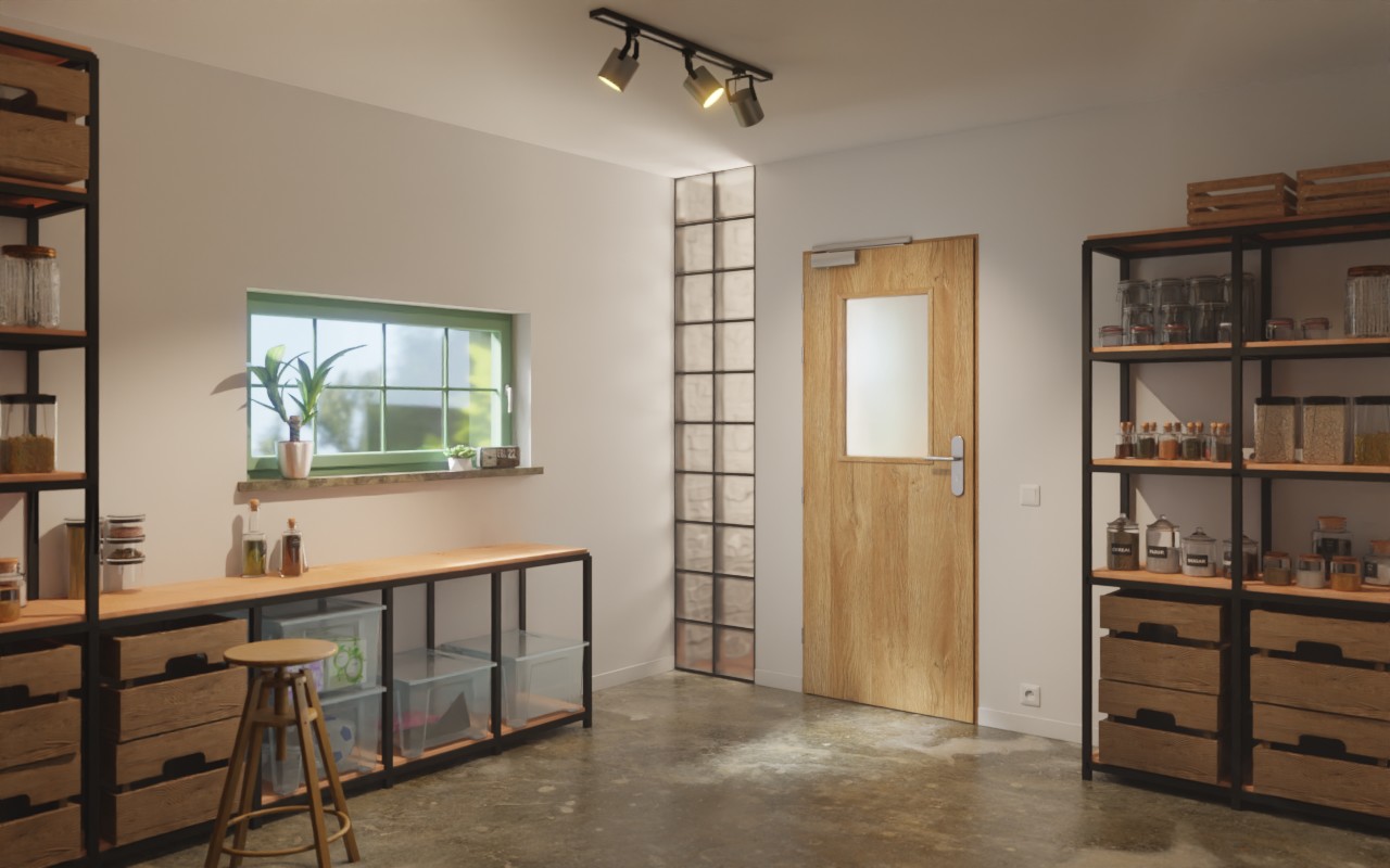 • Ognioodporne drzwi funkcyjne z automatycznym mechanizmem zamykania