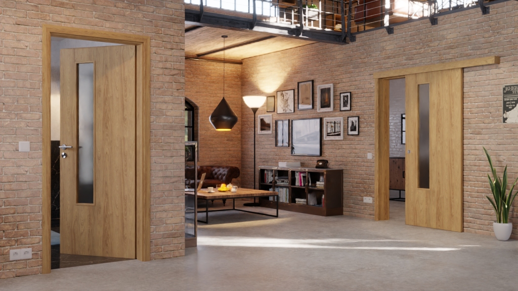 W standardzie do zestawu dołączone są zarówno skrzydło drzwiowe, jak i okrągła muszla uchwytowa oraz prowadnica podłogowa. Powłoka CPL jest odporna na zarysowania i uderzenia, a jednocześnie zapewnia łatwość w pielęgnacji.