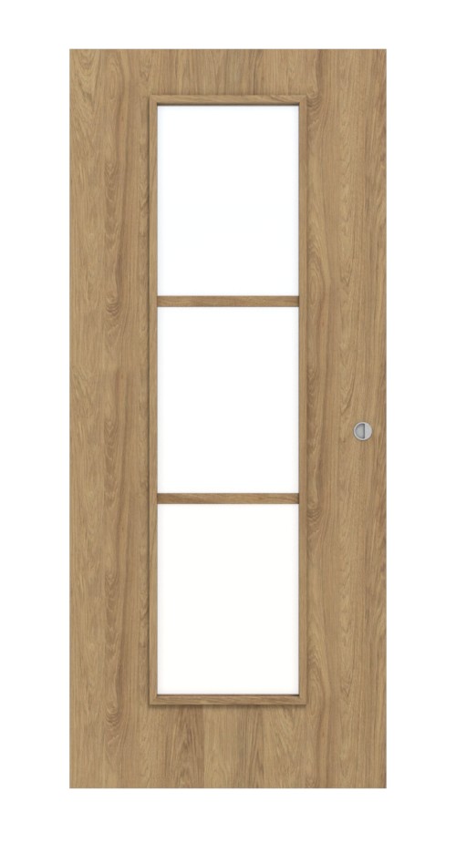 Brązowy dekor dębowy tworzy przyjazną atmosferę mieszkalną. Delikatne linie i naturalne odcienie nadają powierzchni żywą ekspresję. Trójczęściowe przeszklenie zapewnia harmonijne doświetlenie.