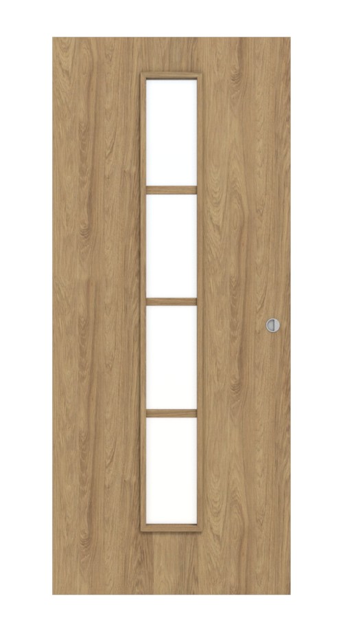 Mieszanka brązowego dekoru dębowego i centrowanego, wąskiego przeszklenia tworzy przyjazną atmosferę w Twoim wnętrzu. W przypadku szkła masz do wyboru design przezroczysty lub satynowy.