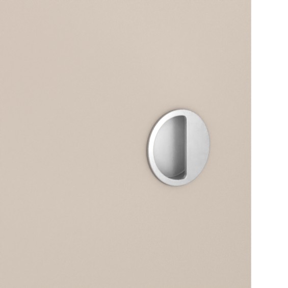 • W zestawie okrągły uchwyt wpuszczany muszlowy i rowek na prowadnicę podłogową