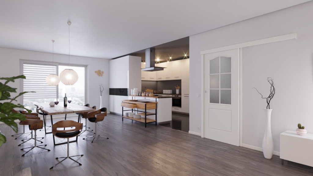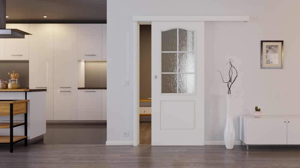 Komfortowe drzwi pokojowe z przeszkleniem z ornamentowego szkła: