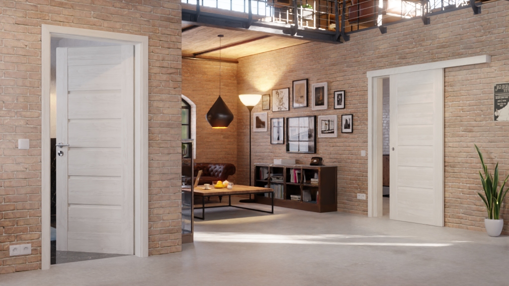 Drzwi przesuwne z norweskiego jesionu do nowoczesnego wnętrza: