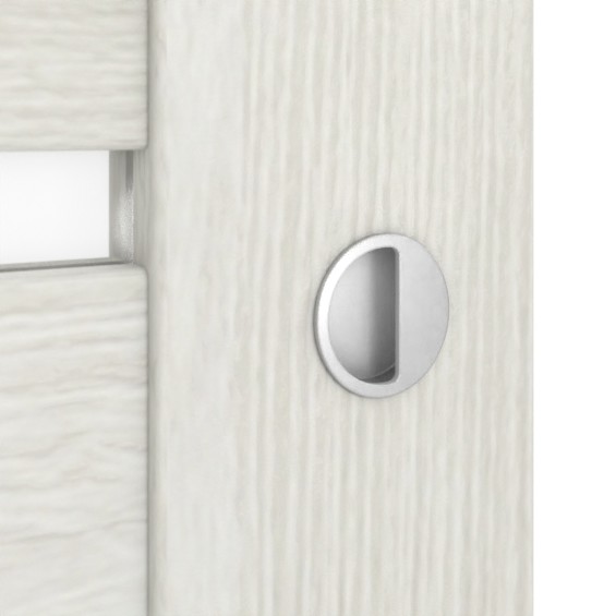 Model składa się z wzdłużnych i pionowych płyt MDF. Oprócz skrzydła drzwi przesuwnych, standardowy zakres dostawy obejmuje również zaokrąglony uchwyt wpuszczany muszlowy i rowek podłogowy.