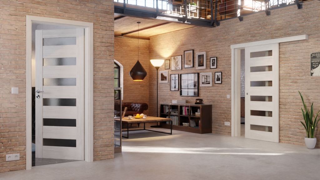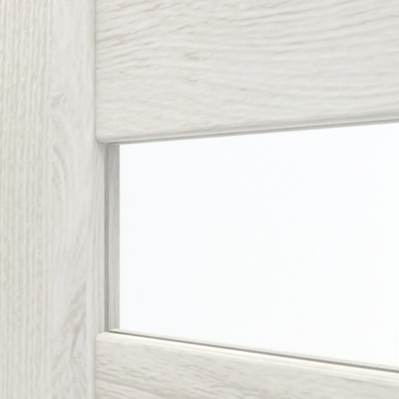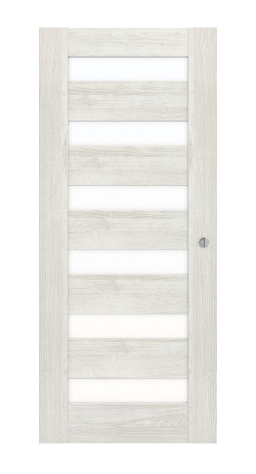 Jasna powierzchnia CPL o wykończeniu wizualnym przypominającym drewno wprowadza harmonię i naturalność do Twoich pomieszczeń. Wzmocnione wrażenie ogólne tworzy satynowane szkło ESG o grubości 4 mm, wbudowane w skrzydło drzwiowe.