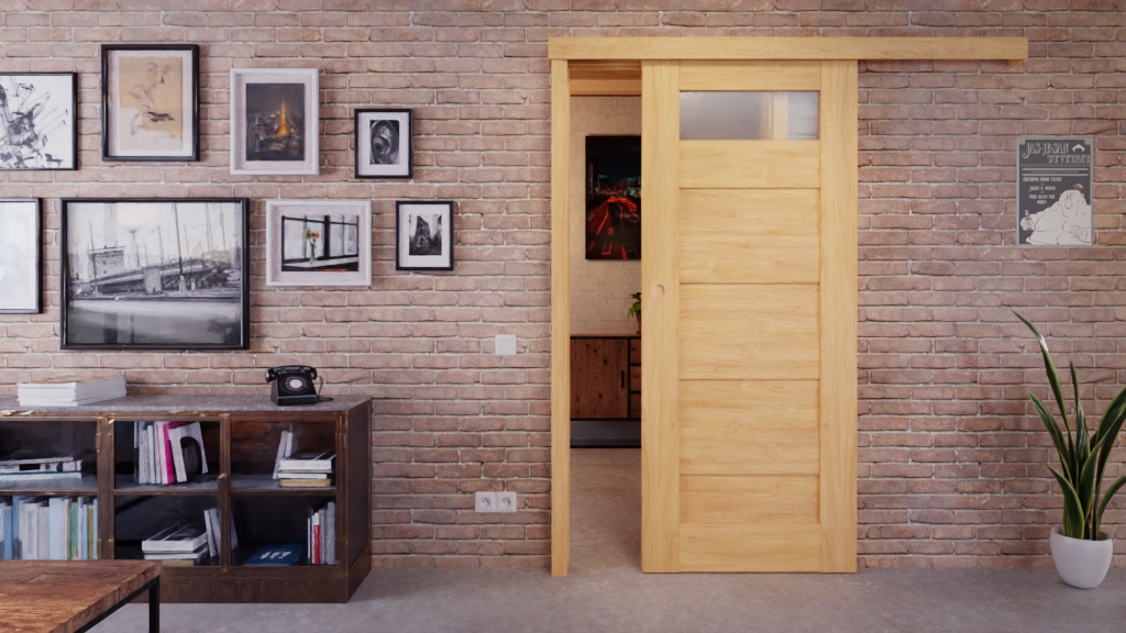 • Zakres dostawy: Skrzydło drzwiowe, muszla drzwi przesuwanych, prowadnica podłogowa, szklenie