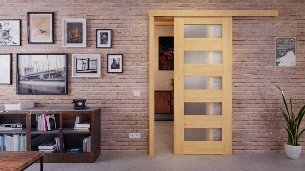 • Zakres dostawy: Skrzydło drzwiowe, muszla drzwi przesuwanych, prowadnica podłogowa, szklenie