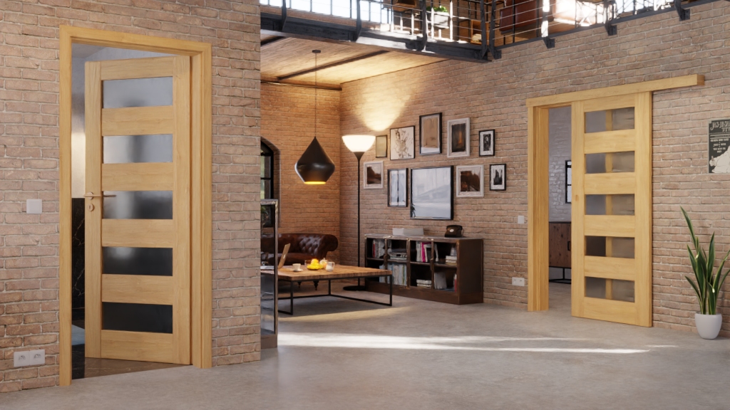Ładne drzwi wewnętrzne z powierzchnią o wyglądzie 3D.
