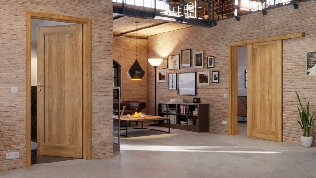 Niedrogie drzwi pokojowe z wytrzymałym skrzydłem drzwiowym w kolorze dąb Grandson