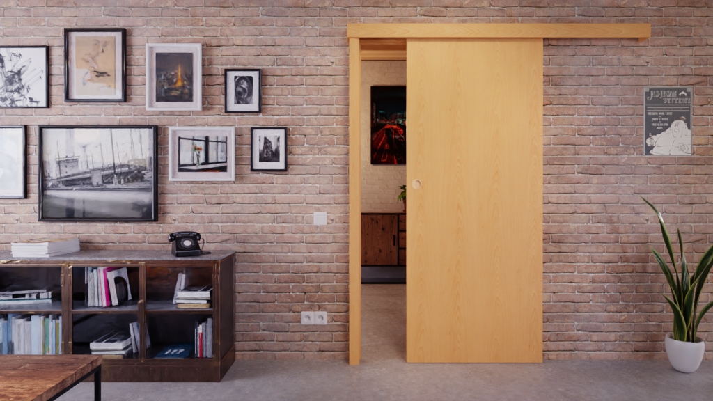 • Zakres dostawy: Skrzydło drzwiowe, muszla drzwi przesuwanych, rowek prowadzący w podłodze