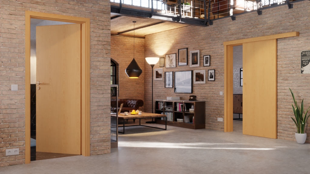 Ładne drzwi wewnętrzne z wytrzymałą powierzchnią w kolorze buk