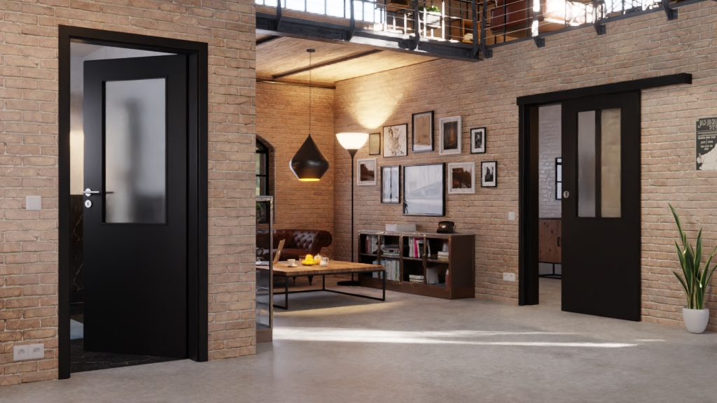 • Oszczędzające miejsce drzwi przesuwne Natura HK M3 w kolorze Uni Black