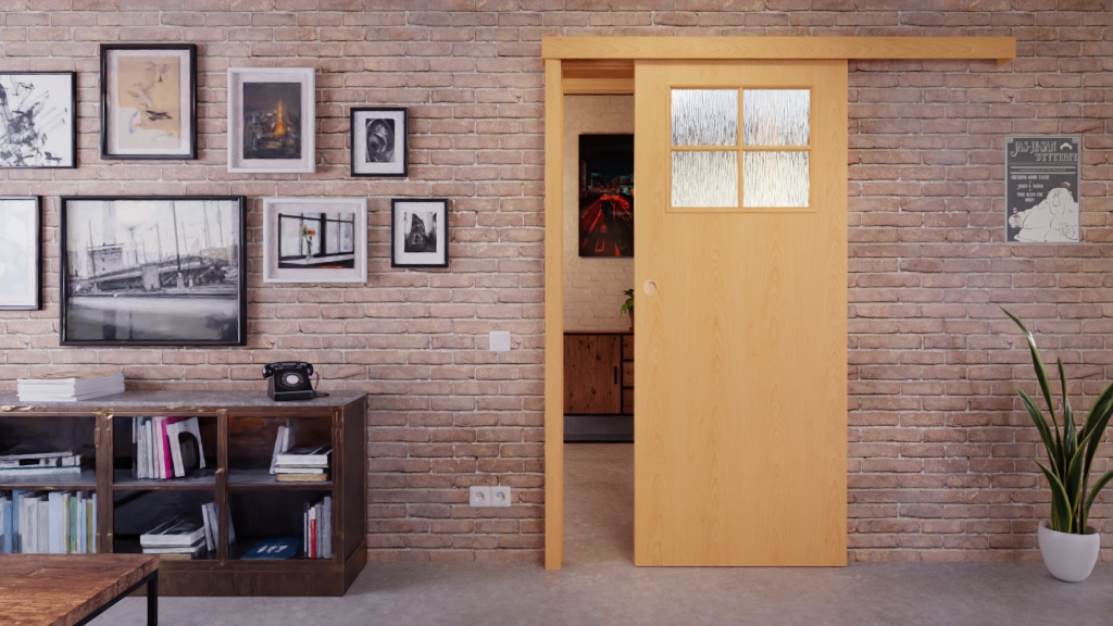 • Zakres dostawy: Skrzydło drzwiowe, muszla drzwi przesuwanych, prowadnica podłogowa, szklenie