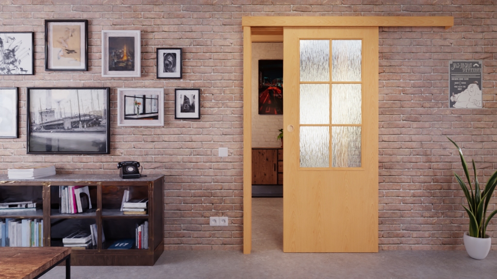 • Zakres dostawy: Skrzydło drzwiowe, muszla drzwi przesuwanych, prowadnica podłogowa, szklenie