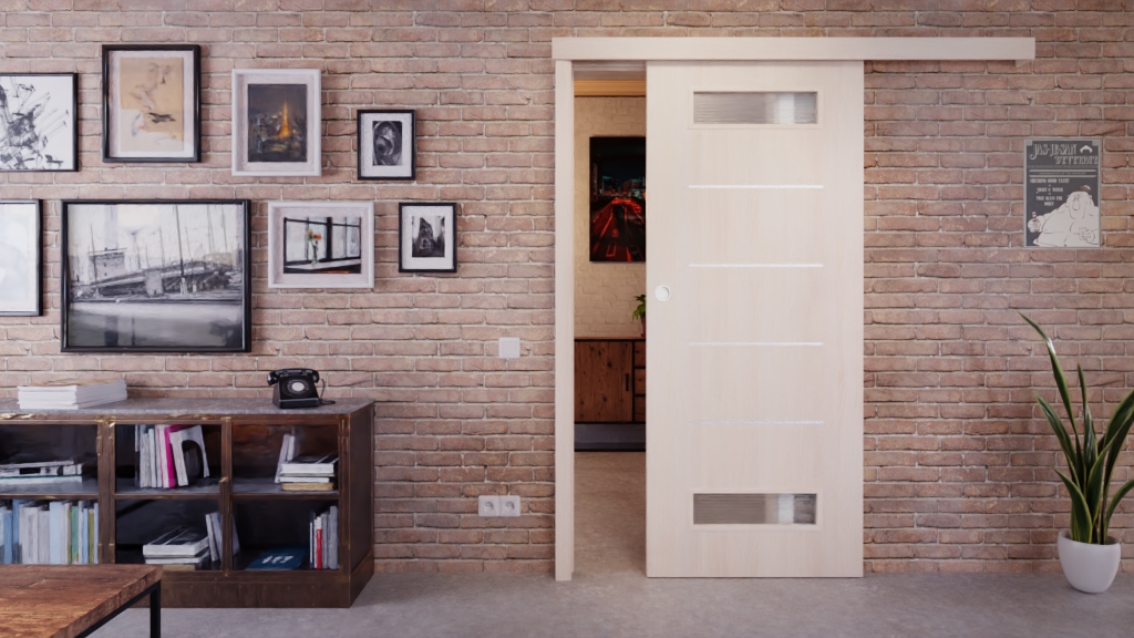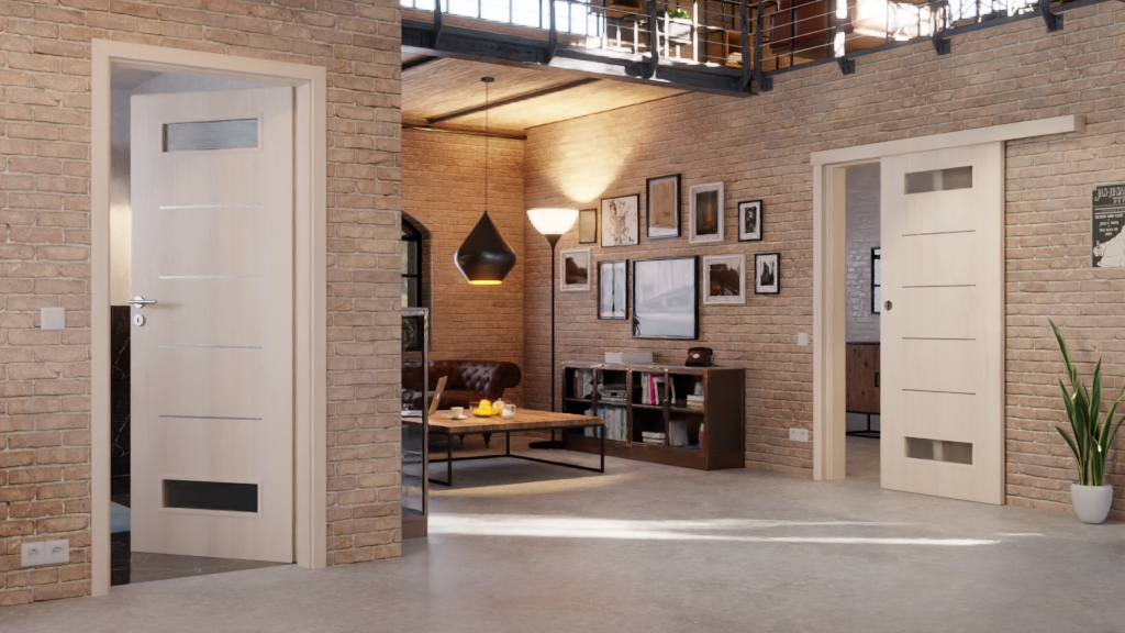 • Zakres dostawy: Skrzydło drzwiowe, muszla drzwi przesuwanych, prowadnica podłogowa, szklenie