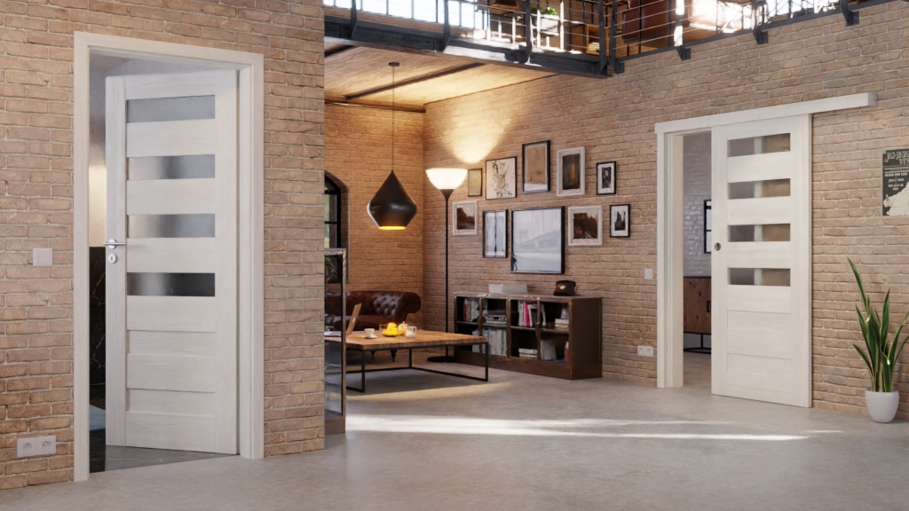 Odporne na zarysowania drzwi pokojowe z wbudowanymi w skrzydło drzwiowe płytami MDF: