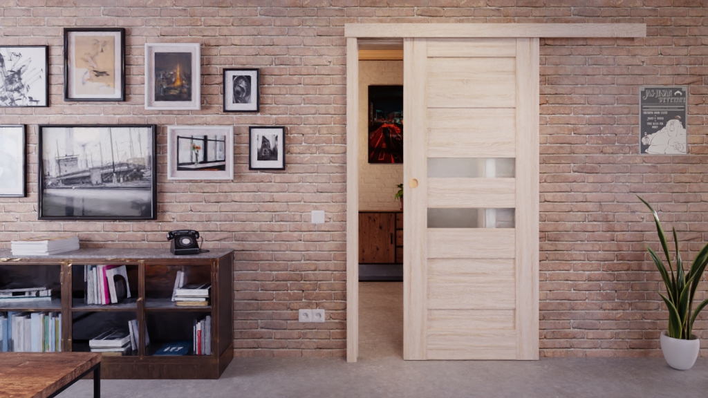 • Zakres dostawy: Skrzydło drzwiowe, muszla drzwi przesuwanych, prowadnica podłogowa, szklenie