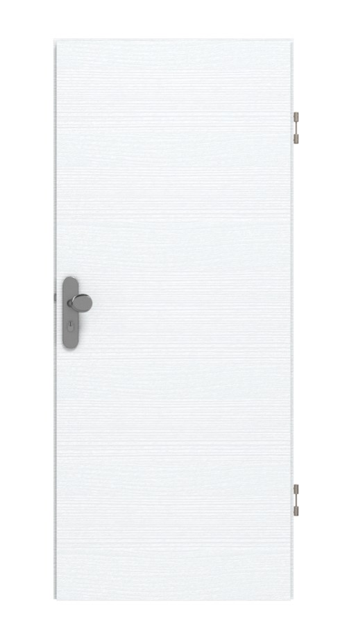 Płyta wiórowa pełna stanowiąca rdzeń skrzydła drzwiowego charakteryzuje się imponującą wytrzymałością i stabilnością. Drzwi te bez problemu radzą sobie z wahaniami temperatury – dzięki klasie klimatycznej 2. W wyposażeniu podstawowym znajdują się 3-częściowe zawiasy, zamek z wkładką cylindryczną oraz opuszczana uszczelka podłogowa. Ponadto wykonanie krawędzi jest prostokątne.