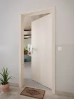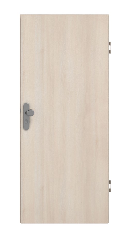 W środku skrzydła drzwiowego znajduje się wysokiej jakości płyta wiórowa, która zapewnia dużą stabilność. Dzięki klasie klimatycznej 2 drzwi są odporne na wahania temperatury. W zestawie znajdują się 3-częściowe zawiasy, zamek cylindryczny oraz opuszczana uszczelka podłogowa . Krawędzie mają kształt prostokątny.