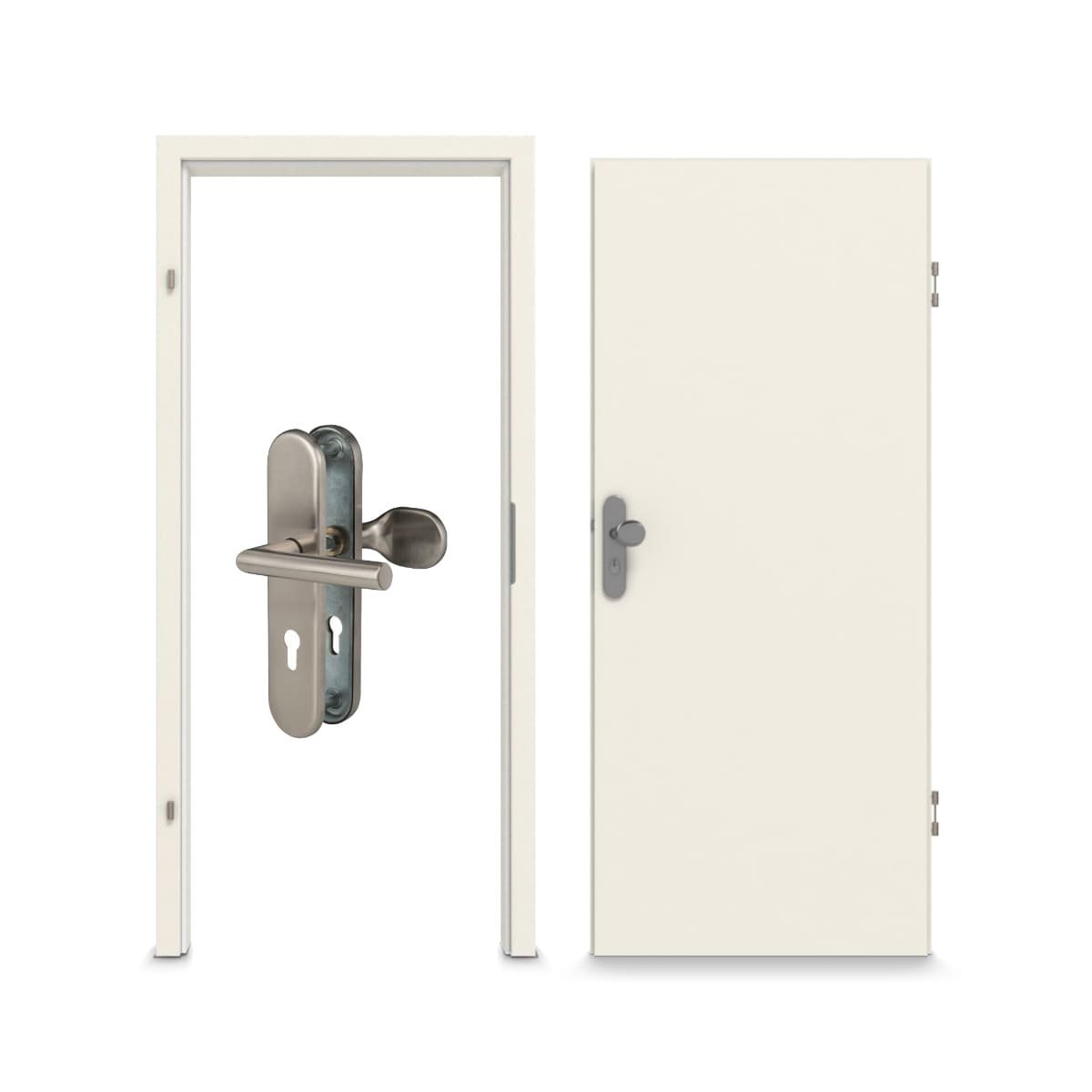 Zestaw drzwi wejściowych do mieszkania na co dzień, w tym skrzydło drzwiowe, ościeżnica i okucia: