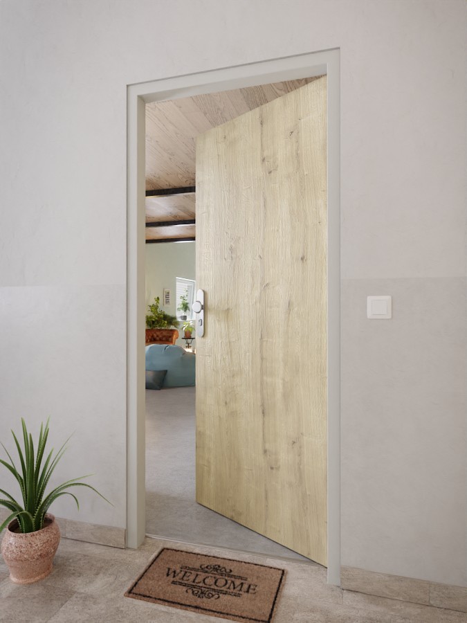 W rdzeniu skrzydła drzwi znajduje się wysokiej jakości płyta wiórowa, która zapewnia dużą stabilność. Te drzwi radzą sobie z wahaniami temperatury - dzięki klasie klimatycznej 2. W standardzie znajdują się 3-częściowe zawiasy, zamek cylindryczny oraz opadająca uszczelka podłogowa. Dodatkowo wykończenie krawędzi jest kwadratowe.