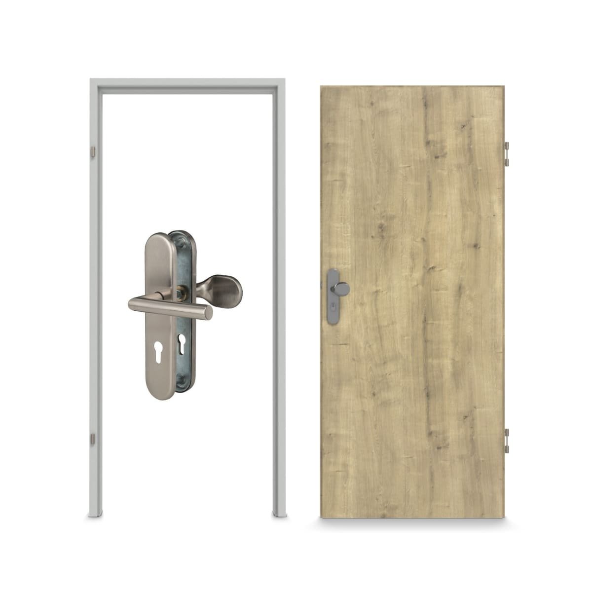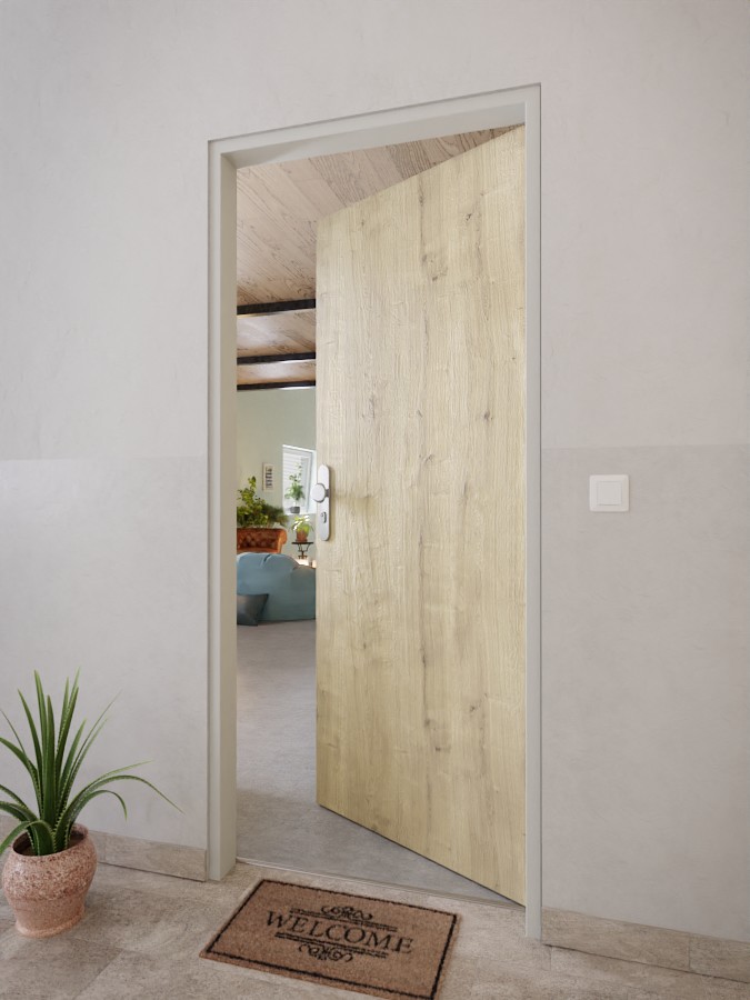 Wypełniona płyta w rdzeniu skrzydła drzwiowego charakteryzuje się imponującą wytrzymałością i stabilnością. Te drzwi radzą sobie z wahaniami temperatury - dzięki klasie klimatycznej 2. W zestawie znajdują się 3-częściowe zawiasy, zamek cylindryczny oraz opadająca uszczelka podłogowa. Wykończenie krawędzi jest kwadratowe.