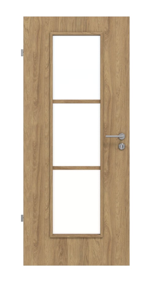 Brązowy dekor dębu tworzy przyjazną atmosferę w mieszkaniu. Delikatne linie i naturalne odcienie nadają powierzchni żywy charakter. Trójczęściowe przeszklenie zapewnia harmonijne doświetlenie.