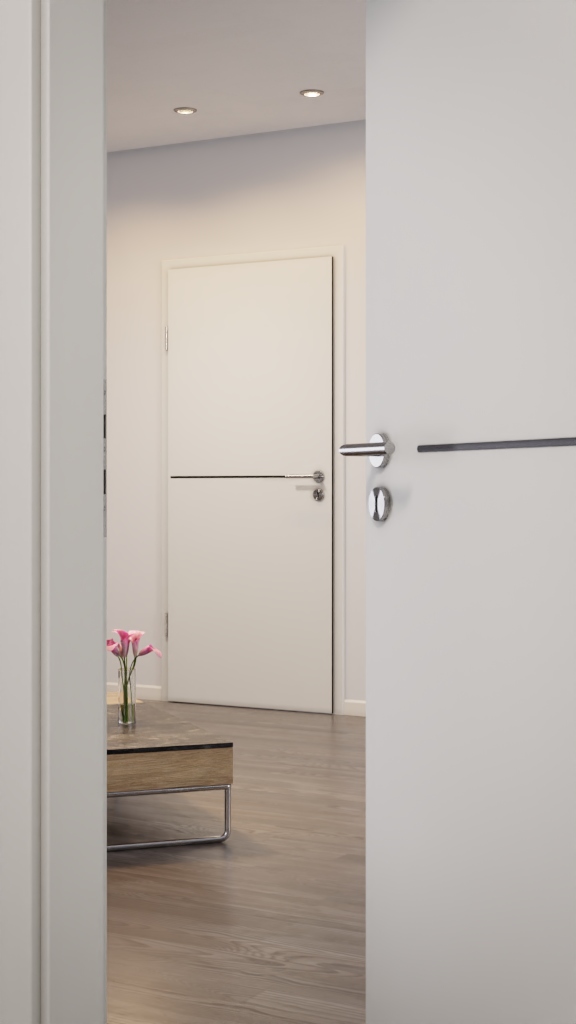 Jasna powierzchnia nadaje drzwiom elegancki wygląd, który harmonijnie wpasowuje się w każdą aranżację wnętrza. Classen zapewnia ekscytujący design dzięki czarnej, kanciastej krawędzi i czarnej listwie.