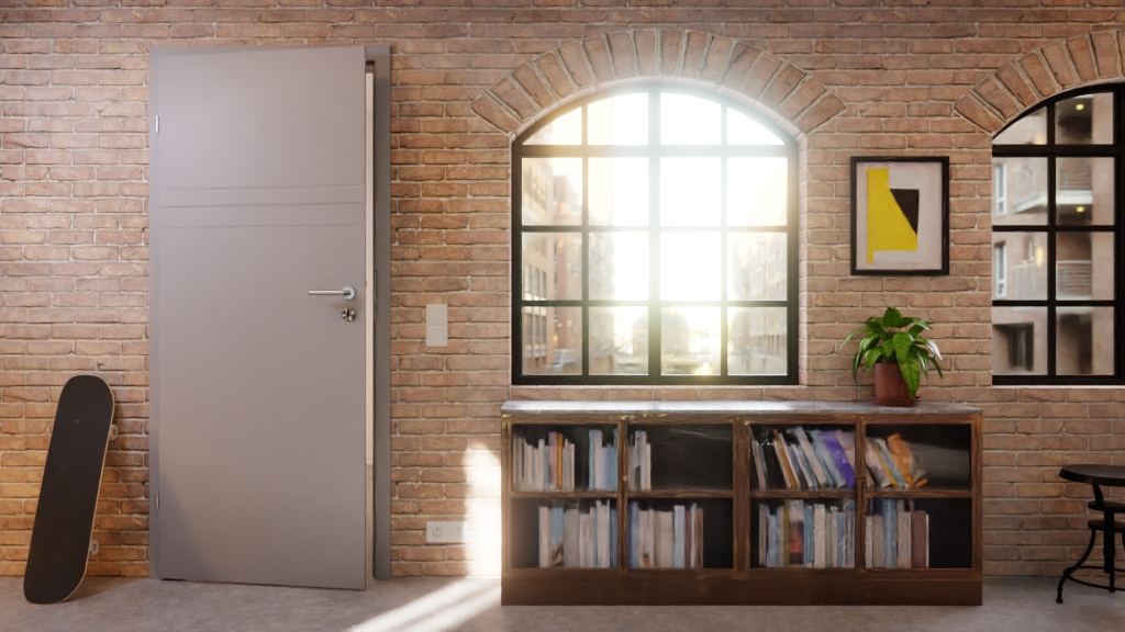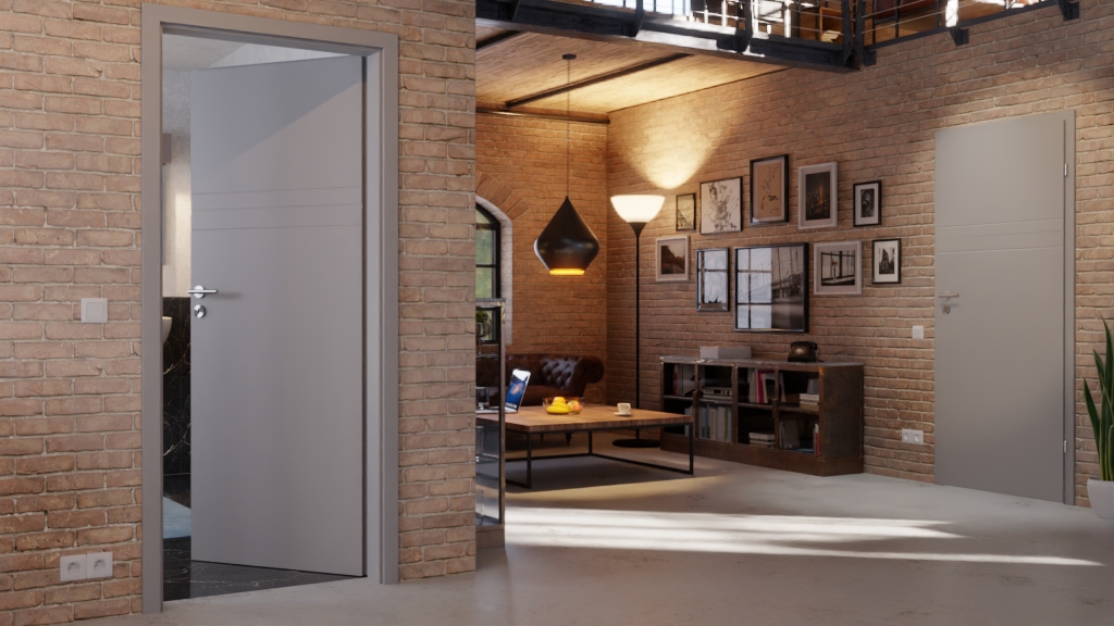 Eleganckie skrzydło drzwiowe z trwałym lakierowaniem w kolorze RAL 7004 i zaokrąglonymi krawędziami:
