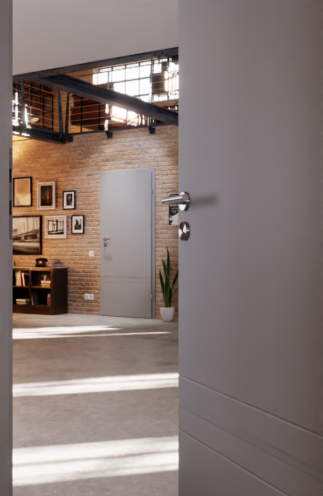 Drzwi wewnętrzne o wyrazistym charakterze z wytrzymałą powłoką ochronną i funkcjonalnym profilem ramy MDF: