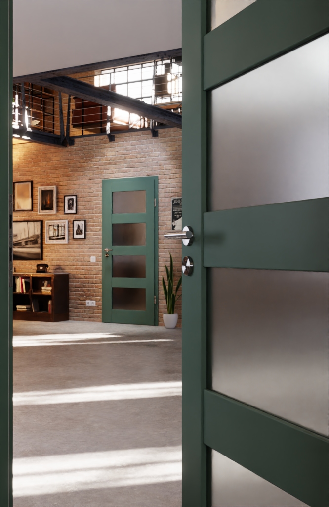 Drzwi designerskie z ramą MDF, 3-częściowymi zawiasami i kanciastym wykończeniem: