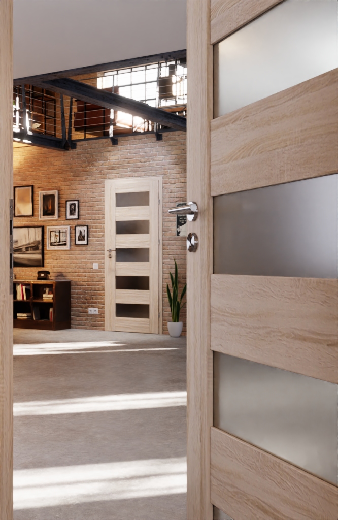 Estetyczne drzwi wewnętrzne z zamkiem wpuszczanym oraz podcięciem wentylacyjnym jako opcjonalne wyposażenie: