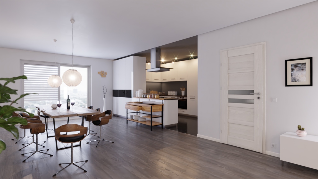 Estetyczne drzwi wewnętrzne z solidną powierzchnią i podcięciem wentylacyjnym jako opcjonalne wyposażenie: