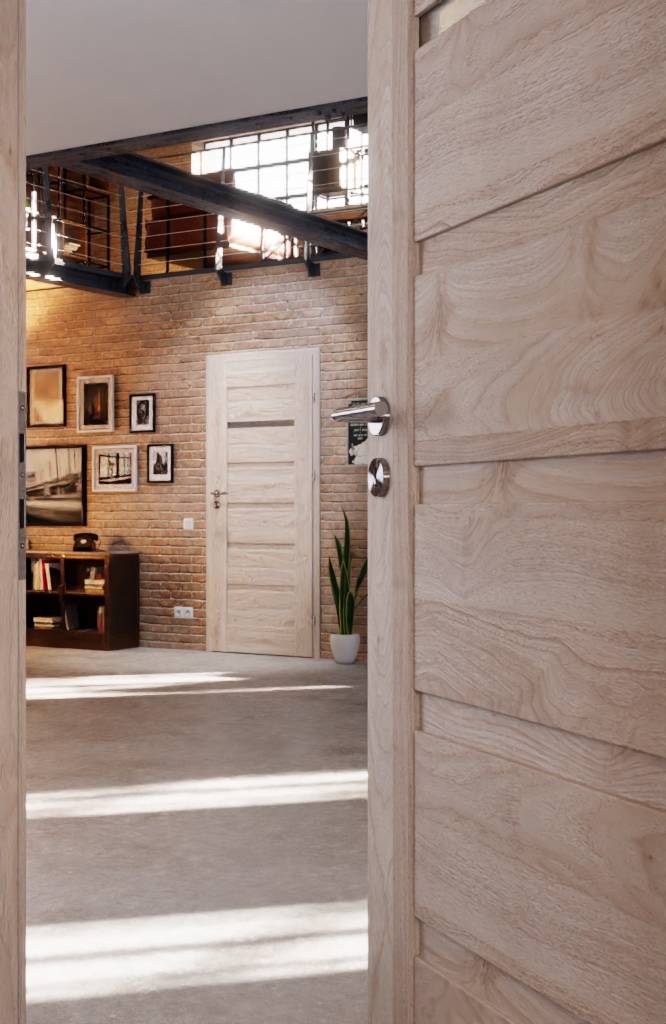 Stylowe drzwi wewnętrzne z trwałą powierzchnią i opcjonalnym podcięciem wentylacyjnym:
