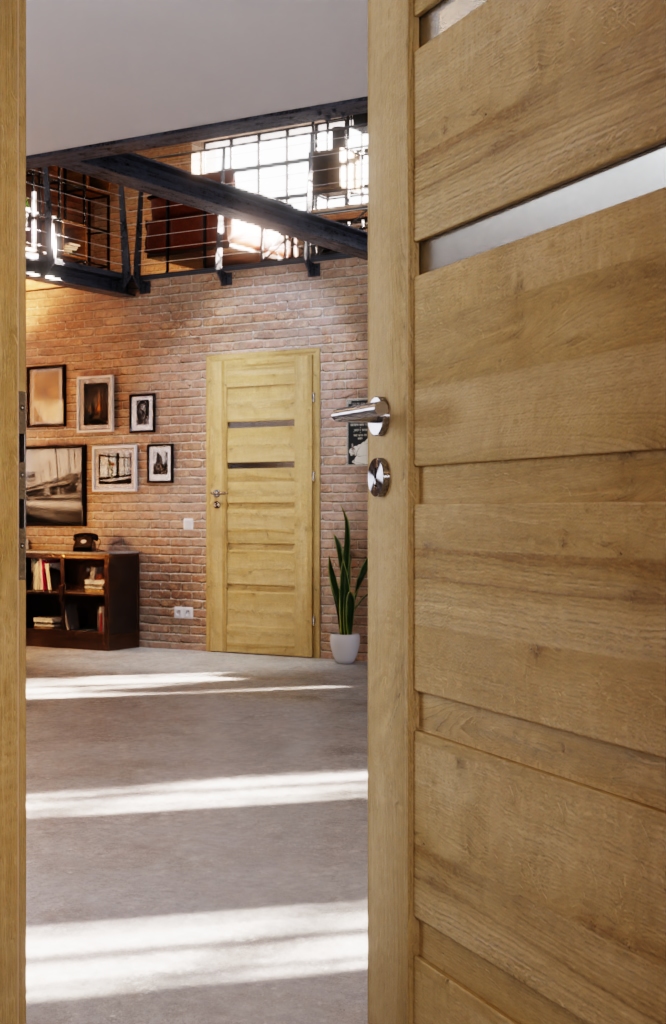 Estetyczne drzwi wewnętrzne z trwałą warstwą wierzchnią oraz podcięciem wentylacyjnym jako opcjonalne wyposażenie: