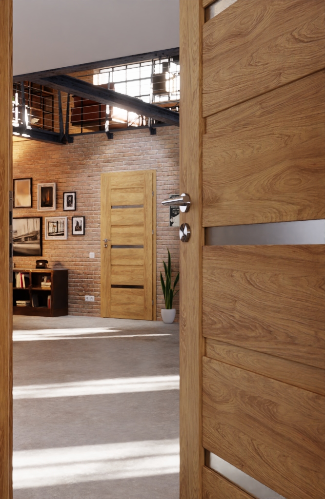 Wytrzymałe drzwi wewnętrzne ze stylową powierzchnią o wyglądzie 3D