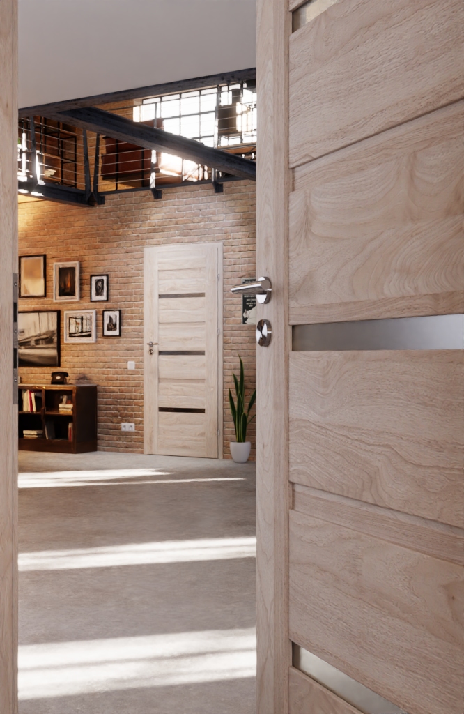 Stylowe drzwi wraz z zamkiem wpuszczanym i 3 zawiasami: