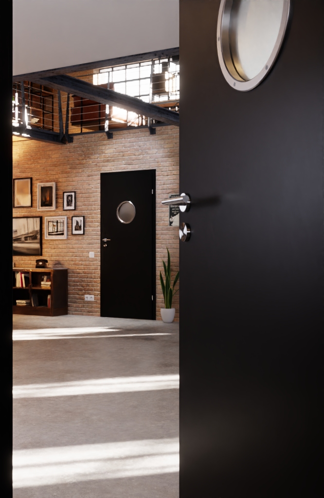 Stylowe drzwi wewnętrzne o solidnej konstrukcji i opcjonalnej stalowej płycie pod klamkę: