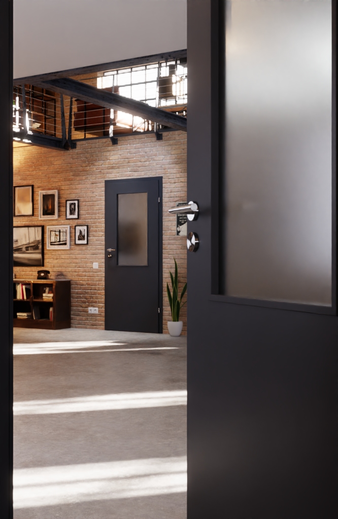 Niedroga drzwi wewnętrzne z zamkiem wpuszczanym i opcjonalną stalową płytą ochronną: