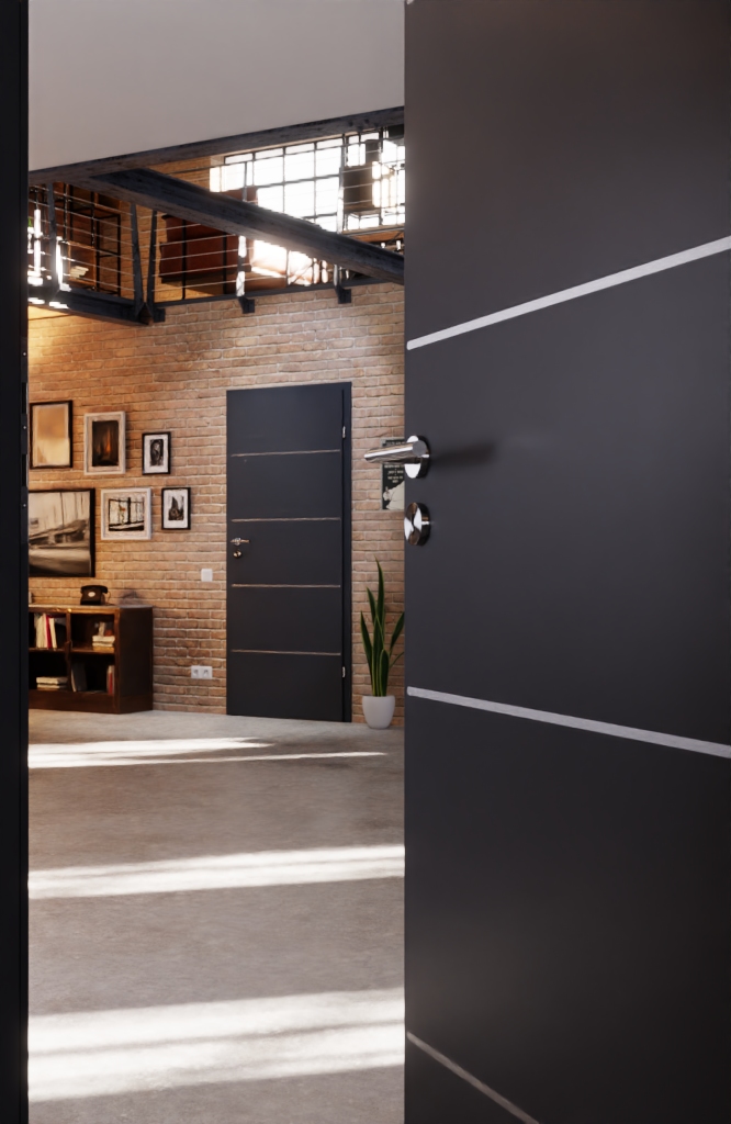 Odporne na uderzenia drzwi z opcjonalną stalową płytą pod klamkę: