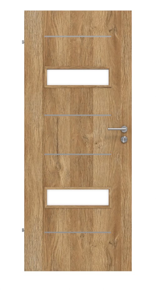 • Zakres dostawy: Skrzydło drzwiowe, zawiasy, zamek, szklenie