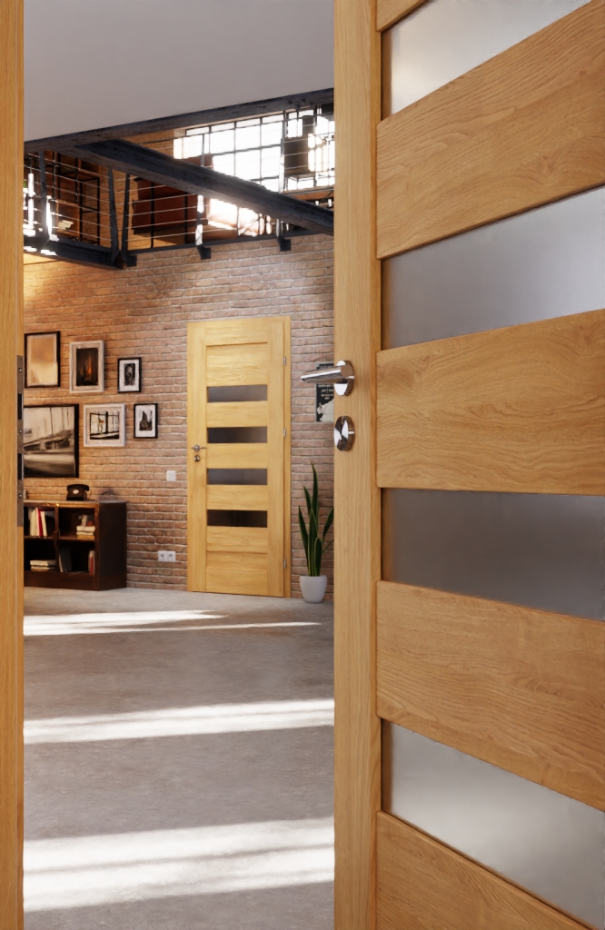 Estetyczne drzwi z solidną warstwą wierzchnią i podcięciem wentylacyjnym jako opcjonalne wyposażenie: