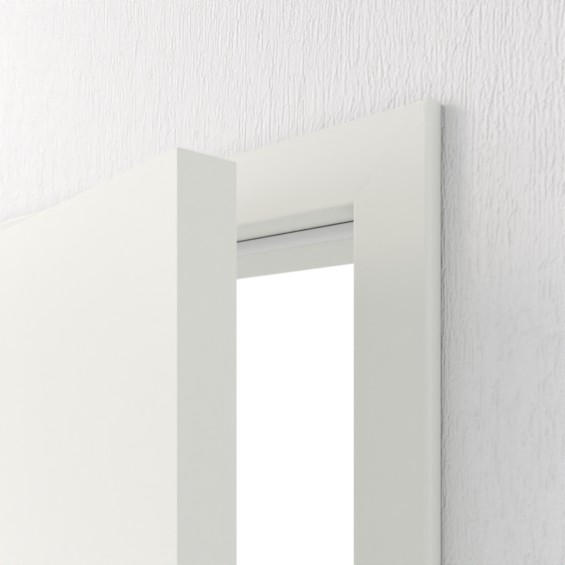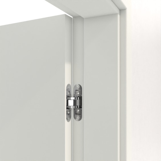 Bezszwowe przejście między skrzydłem drzwi a ościeżnicą symbolizuje harmonię, podkreśloną przez jednolity wygląd drzwi i ościeżnicy. W zestawie znajduje się również klamka oraz ukryte zawiasy.