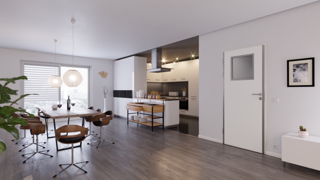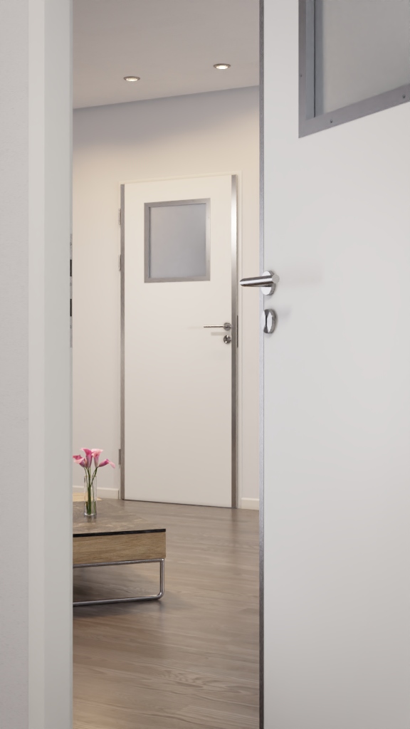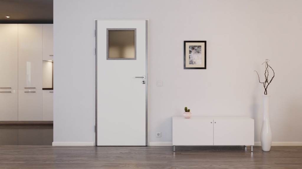 Estetyczne drzwi wewnętrzne ze stabilną ramą skrzydła drzwiowego i wypełnieniem z wiórów drzewnych: