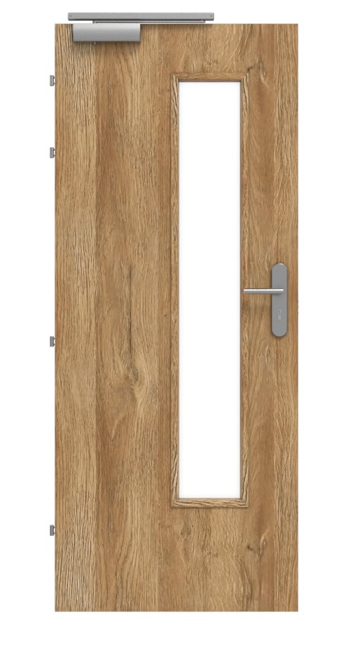 • Wąskie przeszklenie ze szkła przeciwpożarowego w obszarze zamka