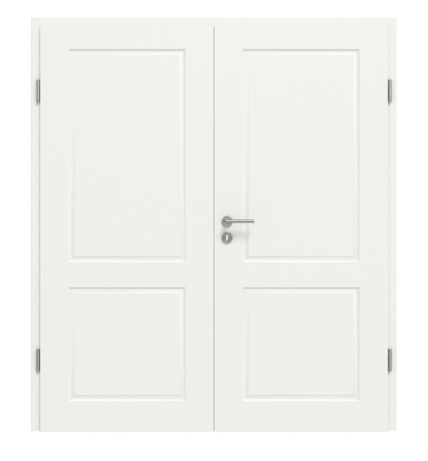 Wypełnienie podwójne składa się z mniejszej kasety w dolnej części i większej w górnej części odpowiedniego skrzydła drzwiowego. Ten popularny układ zapewnia przytulny wystrój wnętrza.