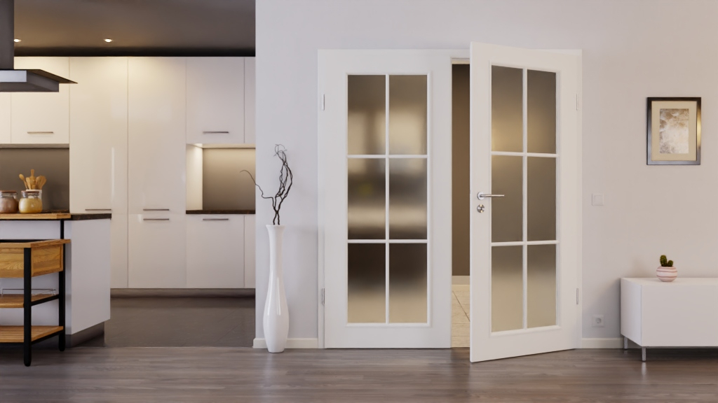 Drzwi zapewniają gwarancję doskonałego dopływu światła, ponieważ składają się głównie z dwóch dużych ram z prętami. Szklenie wchodzi w zakres dostawy. Do wyboru szkło przezroczystelub satynowane.