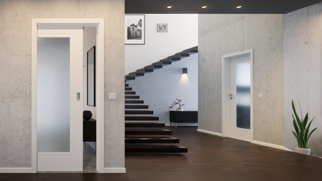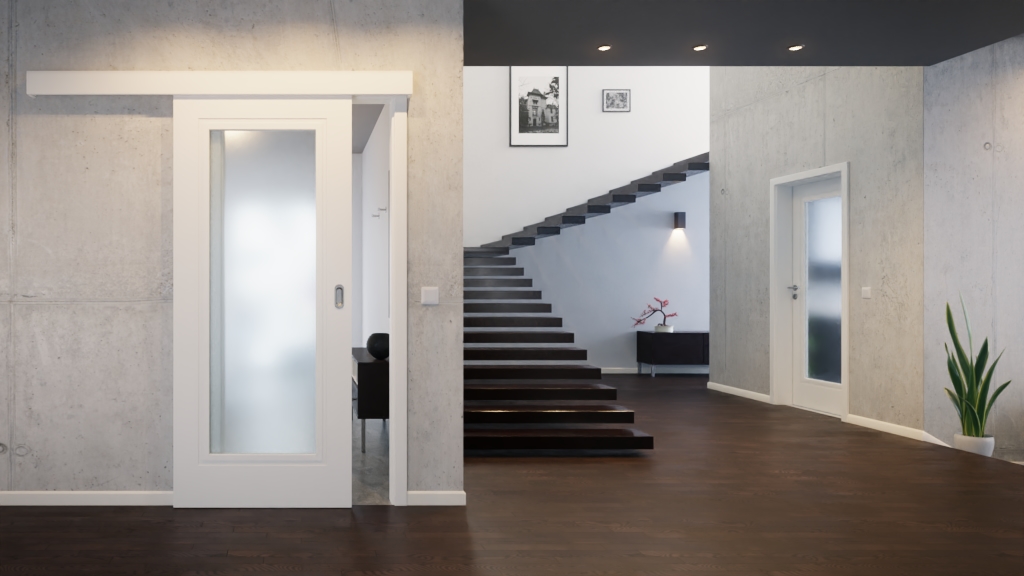 Na większej części skrzydła drzwiowego znajduje się wycięcie na światło. Listwy szklane są zlicowane z powierzchnią, dzięki czemu drzwi prezentują się jako całość. W ramach wielowarstwowego procesu lakierowania na powierzchnię nakładana jest farba w kolorze RAL 9016 , co pozwala uzyskać jedwabiście gładką, jednolitą warstwę wierzchnią.