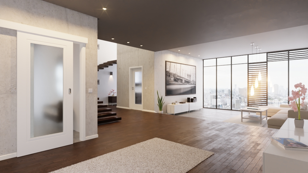 Podkreśla wyjątkowy styl mieszkania: Drzwi przesuwne z białym lakierem Cofi 10 LA 01 z serii Cofi Premium dają Ci więcej możliwości aranżacji wnętrza.